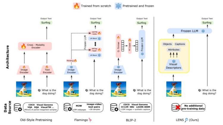 研发团队表示,LENS 使用大语言模型来对一组独立的、高度描述的视效模块的输出进行推理,以提供对图像的详尽信息。